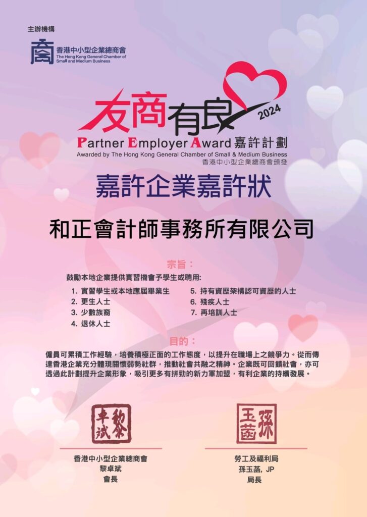 The 2024 “Partner Employer Award,” organized by the Hong Kong General Chamber of Small and Medium Business Limited, recognizes organizations that have demonstrated a strong commitment to supporting the community by providing internships for students and creating employment opportunities for groups, include individuals with disabilities, ethnic minorities, rehabilitated persons, retirees, and those undergoing re-training programs.